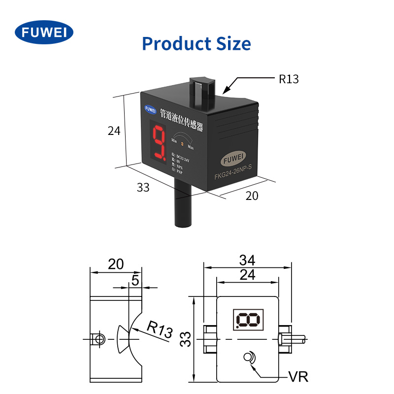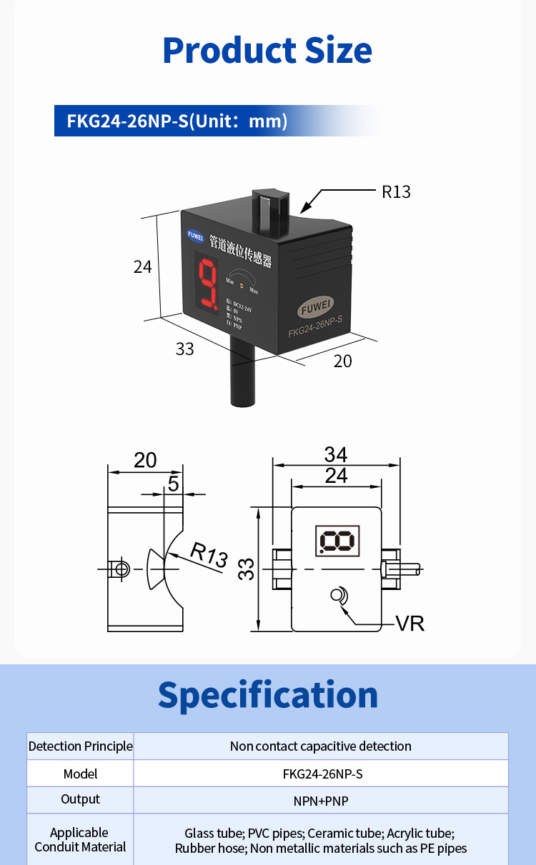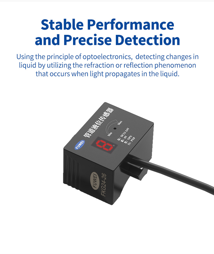 FKG24-26NP সিরিজ পাইপ তরল স্তর সেন্সর ক্যাপাসিটিভ নীতি, পাইপ উপাদান দ্বারা সহজেই প্রভাবিত হয় না