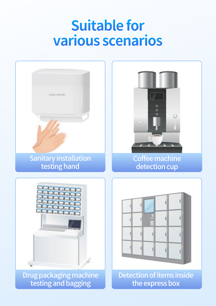 এই "স্পেসিয়াল ফিল্টারিং" সক্ষমতা এটিকে যথাযথ অবস্থানের বিচারের প্রয়োজন এমন পরিস্থিতিতে যেমন উচ্চারণ করতে সক্ষম করে, যেমন হাইজিন ডিভাইসে হাত সনাক্তকরণ এবং রোবোটিক আর্ম ওয়ার্কিং রেঞ্জগুলির পর্যবেক্ষণ।