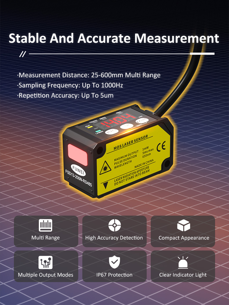 শিল্প অটোমেশনের ক্ষেত্রে, উচ্চ-নির্ভুলতা, উচ্চ-নির্ভরযোগ্যতা স্থানচ্যুতি পরিমাপ সর্বদা উত্পাদন দক্ষতা এবং পণ্যের মানের মূল গ্যারান্টি হয়ে দাঁড়িয়েছে। ফুওয়ে ইলেকট্রনিক্স 'সদ্য চালু হয়েছেসিএমওএস লেজার স্থানচ্যুতি সেন্সর এফএসডি 13 সিরিজ, এর যুগান্তকারী প্রযুক্তিগত নকশা এবং কঠোর শিল্প-গ্রেডের মানগুলির সাথে, যান্ত্রিক উত্পাদন, বৈদ্যুতিন প্যাকেজিং এবং খাদ্য প্যাকেজিং, জটিল অপারেটিং অবস্থার পরিমাপের মানকে নতুনভাবে সংজ্ঞায়িত করার মতো শিল্পগুলির জন্য "মিলিমিটার-স্তরের নির্ভুলতা এবং মাইক্রোমিটার-স্তরের স্থিতিশীলতা" বুদ্ধিমান সনাক্তকরণ সমাধান সরবরাহ করে।