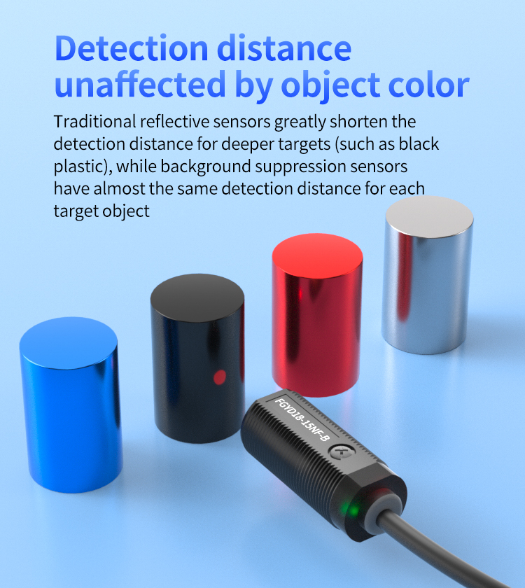 ইঞ্জিনিয়ার জাং এফজিওয়াইডি 18 সিরিজের ব্যাকগ্রাউন্ড দমন হাই-প্রিকিশন ফোটো ইলেক্ট্রিক সেন্সরগুলির বিচারের সিদ্ধান্ত নিয়েছে। তাদের স্ট্যান্ডআউট বৈশিষ্ট্যটি "অবজেক্টের রঙ নির্বিশেষে সনাক্তকরণের পরিসর বজায় রাখার মধ্যে রয়েছে।" কালো, সাদা বা প্রতিফলিত ধাতব লক্ষ্যগুলি সনাক্ত করা হোক না কেন, সেন্সরগুলি সেট 150 মিমি পরিসরের মধ্যে সঠিকভাবে অনুভূত হয়, রঙের বিভিন্নতার কারণে সনাক্তকরণ ব্যর্থতাগুলি কার্যকরভাবে দূর করে।