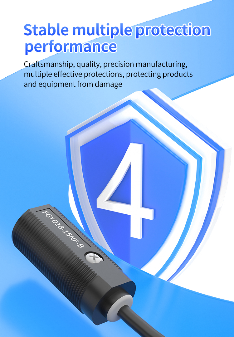 শর্ট-সার্কিট এবং ওভারলোড সুরক্ষা: আউটপুট টার্মিনালগুলিতে অপ্রত্যাশিত শর্ট সার্কিট বা অতিরিক্ত লোড সনাক্ত করার পরে, সুরক্ষা সার্কিট তাত্ক্ষণিকভাবে আউটপুটটি কেটে ফেলতে সক্রিয় করে, সেন্সর নিজেই এবং ডাউন স্ট্রিম সংযুক্ত ডিভাইসগুলির (যেমন, পিএলসি ইনপুট পয়েন্ট) ক্ষতি রোধ করে।