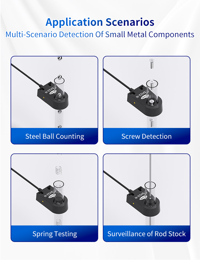 FSH05-FSH44 একটি উপাদানের চেয়ে বেশি; এটি শিল্পের বিস্তৃত পরিসরে গুণমান এবং দক্ষতা বাড়ানোর জন্য একটি কৌশলগত হাতিয়ার। অটোমোটিভ ম্যানুফ্যাকচারিং: ট্রান্সমিশন এবং ইঞ্জিন অ্যাসেম্বলিতে ছোট পিন, স্প্রিংস এবং ফাস্টেনার যাচাই করার জন্য। ইলেকট্রনিক্স অ্যাসেম্বলি: স্মার্টফোনে মেটাল শিল্ড, স্ক্রু এবং কানেক্টরের উপস্থিতি নিশ্চিত করা। ব্লিস্টার প্যাক এবং অন্যান্য প্যাকেজিং ফরম্যাটে ধাতু উপাদান। উপাদান হ্যান্ডলিং: পরিবাহক এবং বাছাই সিস্টেমে ধাতব অংশের প্রবাহ নিরীক্ষণ।